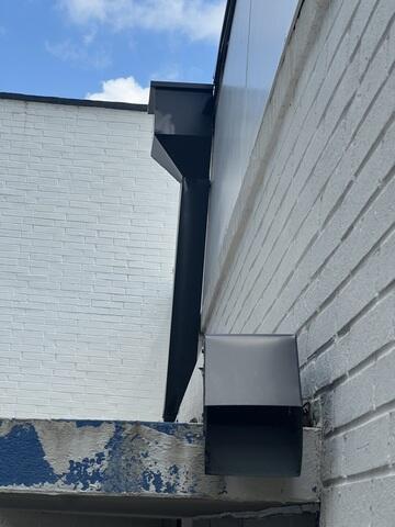 When installation begins, the transformation will be comprehensive. Our team will remove and dispose of all existing gutters, downspouts, and hardware before upgrading the building with commercial-grade 7” box gutters and 4x5 corrugated aluminum downspouts. Conductor boxes will be strategically installed to maximize drainage efficiency, and two downspouts will be rerouted to improve water flow away from the structure. Beneath the surface, we’ll address any compromised wood by replacing rotted fascia with either primed pine or premium cedar and PVC options. If needed, structural sub-fascia repairs, fascia buildouts, and soffit repairs will be completed to ensure the new system is anchored securely. It’s a long-term solution designed to match the caliber of the renovation itself.